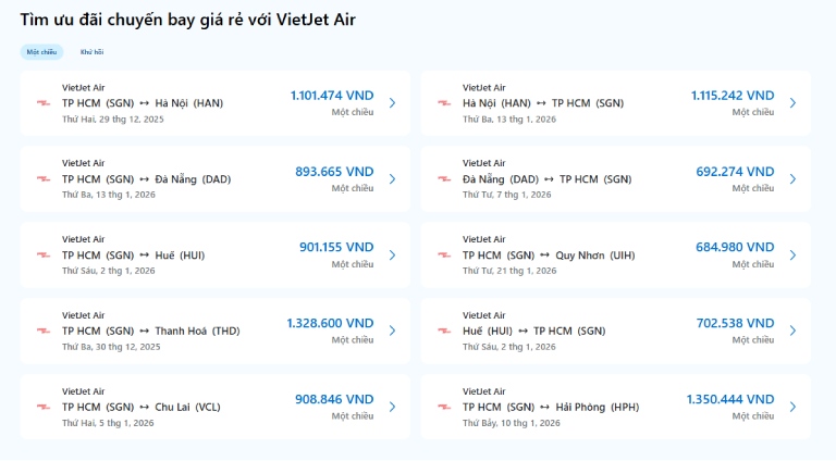Trong những năm gần đây, VietJet Air trở thành lựa chọn quen thuộc của nhiều hành khách khi di chuyển nội địa nhờ giá vé cạnh tranh, mạng lưới đường bay rộng và tần suất chuyến bay dày. Tuy nhiên, giá vé máy bay VietJet không cố định mà thay đổi liên tục theo thời điểm, nhu cầu và khung giờ bay. Vì vậy, check giá vé máy bay VietJet nội địa trước khi đặt là bước quan trọng giúp bạn săn được vé rẻ. Vậy check giá vé máy bay VietJet nội địa ở đâu uy tín, chính xác và dễ thao tác? Bài viết dưới đây sẽ giúp bạn trả lời câu hỏi này một cách chi tiết.