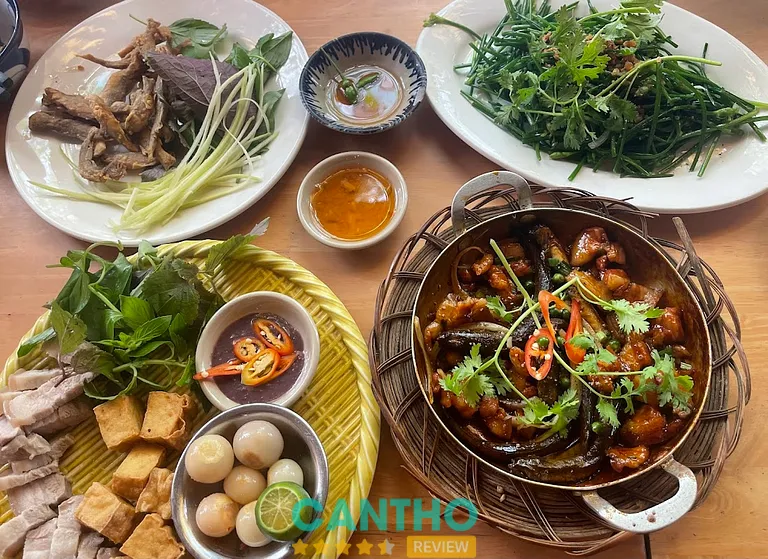 Lẩu mắm đặc sản (189.000đ): Lẩu mắm cá hú/cá lóc/lươn với hương vị đậm đà, thơm lức đặc trưng của mắm cá linh, cá sặc, ăn kèm rổ rau đồng phong phú.