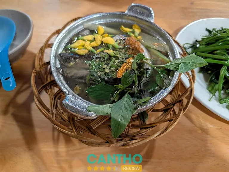 Canh chua miền Tây (55.000đ – 89.000đ): Nước canh chua thanh nhờ me, thơm ngát mùi ngò gai, tỏi phi. Bạn có thể chọn nấu cùng cá lóc, cá diêu hồng, cá ngát, cá hú hoặc tôm. Các loại rau nêm ăn kèm luôn tươi rói và đầy đặn.